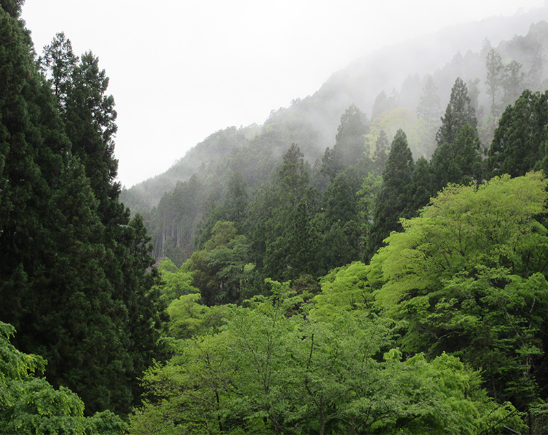 雨が弱まり、霧立ち上る山々の美しさを堪能しました。雨の貴船山は幻想的でした。