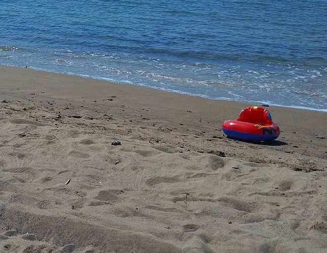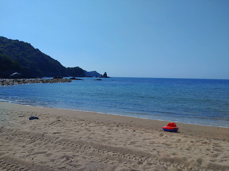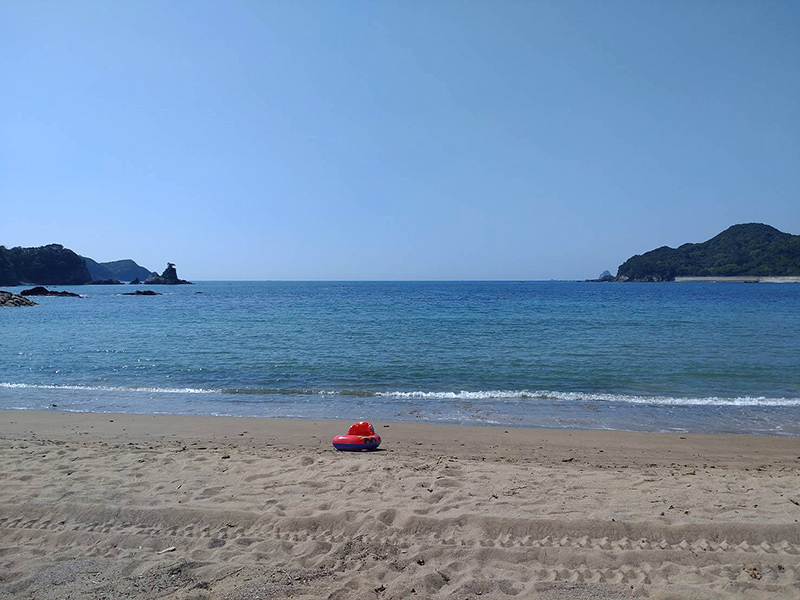 第1室 WJ1-2302 (1)WJ1-2302 (3)WJ1-2302 (2)WJ1-2302 (4) 田井ノ浜 徳島県海部郡美波町由岐 EMI 2023/8/20 風景の記録 WJ1-2302(1)-(4) 砂浜から見渡せる入江が深い孤を描くような海岸線、子供が波打ち際で遊んでいる姿がよく似合う遠浅の海水浴場。この日はお盆明け、砂浜に子供用の小さな浮き輪がぽつり。学生時代によく泳ぎにいった夏の海を思い出し、友達と一緒に夏の名残をしばし楽しみました。A small swim ring on Tainohama beach in Yuki, Tokusima 夏の落とし物 那賀川の潜水橋 展示室へ戻る